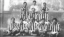 An Athletic Madrid lineup of 1910 in their new red and white kit