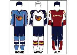 Throughout the team's tenure in Atlanta, the Thrashers' wore jerseys of ice blue, navy blue, red, gold and white.