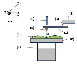 Fig. 3 shows an AFM, which typically consists of the following features.[6] Numbers in parentheses correspond to numbered features in Fig. 3. Coordinate directions are defined by the coordinate system (0).