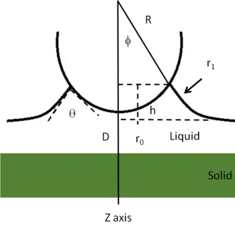 where γL, is the surface energy and r0 and r1 are defined in the figure.