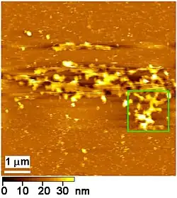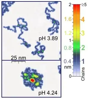 - ^ a b Roiter, Y; Minko, S (Nov 2005). "AFM single molecule experiments at the solid-liquid interface: in situ conformation of adsorbed flexible polyelectrolyte chains". Journal of the American Chemical Society. 127 (45): 15688–9. doi:10.1021/ja0558239. ISSN 0002-7863. PMID 16277495.