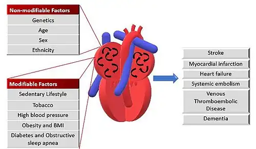 | Risk factors | High blood pressure, valvular heart disease, coronary artery disease, cardiomyopathy, congenital heart disease, COPD, obesity, smoking, sleep apnea[3][5][6][7] |