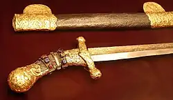 The German chronicler Lampert of Hersfeld, in his Annales written up to 1077, recounts that Anastasia, the mother of King Solomon of Hungary, gave the Sword of Attila to Otto of Nordheim, Duke of Bavaria, as a token of gratitude for helping Solomon ascend to the throne.[61][62] This sword, a cavalry sabre now in the Kunsthistorisches Museum in Vienna, appears to be the work of Hungarian goldsmiths of the ninth or tenth century.[63]