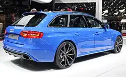 The Audi RS 4 Avant quattro was unveiled at the 2012 Geneva Motor Show and was based on the B8 A4 Avant.[17] The RS 4 Avant uses the Volkswagen MLB platform, and shares the same powertrain as the RS 5 Coupé.