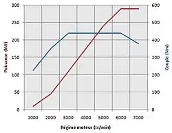 Audi B5 RS 4 engine power (red) and torque (blue) curves