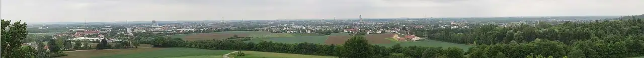 Augsburg lies at the convergence of the Alpine rivers Lech and Wertach and on the Singold. The oldest part of the city and the southern quarters are on the northern foothills of a high terrace, which has emerged between the steep rim of the hills of Friedberg in the east and the high hills of the west. In the south extends the Lechfeld, an outwash plain of the post ice age between the rivers Lech and Wertach, where rare primeval landscapes were preserved. The Augsburg city forest and the Lech valley heaths today rank among the most species-rich middle European habitats.[11]