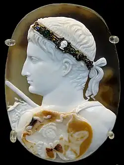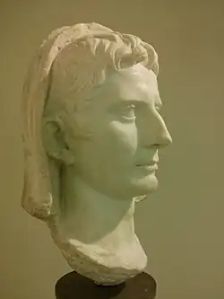 ![]() The Augustus of Prima Porta, a Roman marble statue created c. AD 15 (based on a c. 20 BC bronze original), found at the Villa of Livia, now in the Vatican Museums[1] | |||||