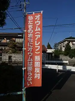 An anti–Aum Shinrikyo banner in 2014