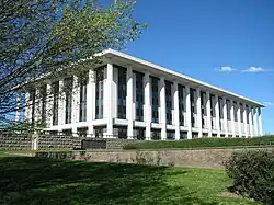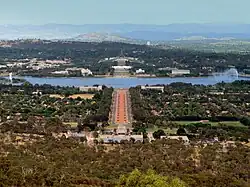After World War II, there was a shortage of housing and office space in Canberra.[42] A Senate Select Committee hearing was held in 1954 to address its development requirements. This Committee recommended the creation of a single planning body with executive power. Consequently, the National Capital Planning and Development Committee was replaced by the National Capital Development Commission in 1957.[43] The National Capital Development Commission ended four decades of disputes over the shape and design of Lake Burley Griffin and construction was completed in 1964 after four years of work. The completion of the centrepiece of Griffin's design finally laid the platform for the development of Griffin's Parliamentary Triangle.[41]
