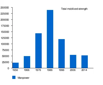 The military consists of 16,000 active-duty personnel and 125,600 reservists.[1] The military budget is 1.0% of national GDP (including pensions) or €3.317 billion (2023, without pensions).[3]