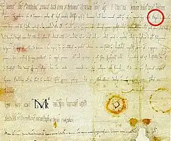 The first document containing the word "Ostarrîchi"; the word is marked with a red circle.