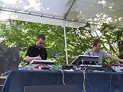 ![]() Rob Brown (left) and Sean Booth (right) performing live as Autechre in 2007 | |