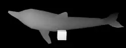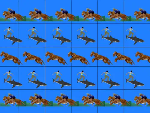 Smooth gradients can also be achieved with an intelligible pattern, assuming that the pattern is complex enough and does not have big, horizontal, monotonic patches. A big area painted with monotonic color without change in hue and brightness does not lend itself to pixel shifting, as the result of the horizontal shift is identical to the original patch. The following depth map of a shark with smooth gradient produces a perfectly readable autostereogram, even though the 2D image contains small monotonic areas; the brain is able to recognize these small gaps and fill in the blanks (illusory contours). While intelligible, repeated patterns are used instead of random dots, this type of autostereogram is still known by many as a Random Dot Autostereogram, because it is created using the same process.