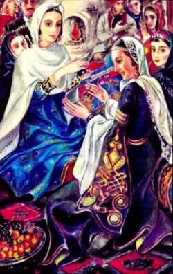 Painting of Avar women having a party by Halil Beg Mussayassul, 1935
