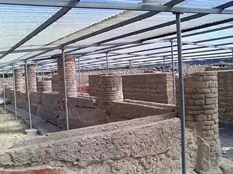 The ruins of the ancient Roman Abellinum are situated near the modern village of Atripalda, 4 kilometres (2.5 miles) east of modern Avellino. They include the forum, faced by temples, baths, parts of the Serino aqueduct and a patrician domus. There was also an amphitheatre and a brothel.