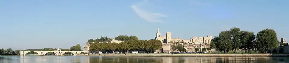 City along the river Rhône Rocher des Doms Palais des Papes Pont Saint-Bénézet Avignon Cathedral Festival d'Avignon | |