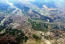 The banks of the Rhone and the Île de la Barthelasse are often subject to flooding during autumn and March. The publication Floods in France since the 6th century until today – research and documentation[20] by Maurice Champion tells about a number of them (until 1862, the flood of 1856 was one of the largest, which destroyed part of the walls). They have never really stopped as shown by the floods in 1943–1944[21] and again on 23 January 1955[22] and remain important today—such as the floods of 2 December 2003.[23] As a result, a new risk mapping has been developed.