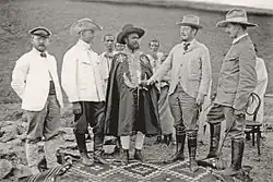 German "Aksum Expedition", February 1906. From left: Theodor von Lüpke, Dr. Erich Kaschke, Dejazmach Gebreselassie Bariagaber (Governor of Tigray), Enno Littmann and Daniel Krencker