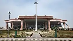 The Ram Mandir (lit. 'Rama Temple') is a Hindu temple complex in Ayodhya, Uttar Pradesh, India.[95][96] Many Hindus believe that it is located at the site of Ram Janmabhoomi, the mythical birthplace of Rama, a principal deity of Hinduism.[97][98][99] The temple was inaugurated[96] on 22 January 2024 after a prana pratishtha (consecration) ceremony.[95][99]
