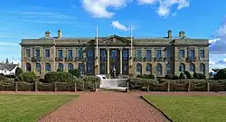 A permanent military presence was established in the town with the completion of Ayr Barracks (later known as Churchill Barracks) on the citadel site in 1795.[21] Ayr Town Hall was designed by Thomas Hamilton and completed in 1832.[22]