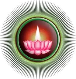 The symbol of Ayyavazhi is a lotus carrying a flame-shaped white Namam.[68] The lotus represents the 1,008-petalled Sahasrara (in Tamil, Ladam), while the Namam represents the Aanma Jyothi or atman.[68] Both of the Ayyavazhi scriptures[69][70] refer to Thirunamam (the "flame-shaped symbol" present in the top of the Lotus in the Ayyavazhi symbol), but not to the lotus directly. The symbol is the ideological summary of Akilam-based philosophy. This symbol has been in use since the mid-20th century.[71]