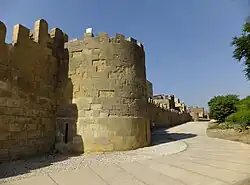 In May 1182, Saladin captured Aleppo after a brief siege; the new governor of the city, Imad al-Din Zangi II, had been unpopular with his subjects and surrendered Aleppo after Saladin agreed to restore Zangi II's previous control over Sinjar, Raqqa, and Nusaybin, which would thereafter serve as vassal territories of the Ayyubids.[70] Aleppo formally entered Ayyubid hands on 12 June. The day after, Saladin marched to Harim, near the Crusader-held Antioch and captured the city when its garrison forced out their leader, Surhak, who was then briefly detained and released by al-Muzaffar Umar.[71] The surrender of Aleppo and Saladin's allegiance with Zangi II had left Izz al-Din al-Mas'ud of Mosul the only major Muslim rival of the Ayyubids. Mosul had been subjected to a short siege in the autumn of 1182, but after mediation by the Abbasid caliph an-Nasir, Saladin withdrew his forces. Mas'ud attempted to align himself with the Artuqids of Mardin, but they became allies of Saladin instead. In 1183, Irbil too switched allegiance to the Ayyubids. Mas'ud then sought the support of Pahlawan ibn Muhammad, the governor of Azerbaijan, and although he did not usually intervene in the region, the possibility of Pahlawan's intervention made Saladin cautious about launching further attacks against Mosul.[72]