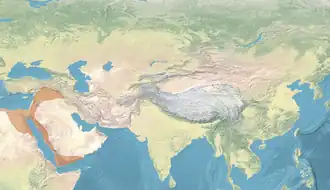 In the east, the Khwarazmian Empire under Jalal al-Din Mangburni captured the town of Khilat from al-Ashraf,[92] while the traditionally loyalist Rasulids began to encroach on Ayyubid holdings in Arabia. In 1222 the Ayyubids appointed the Rasulid leader Ali ibn Rasul as governor of Mecca. Ayyubid rule in Yemen and the Hejaz was declining and the Ayyubid governor of Yemen, Mas'ud ibn Kamil, was forced to leave for Egypt in 1223. He appointed Nur ad-Din Umar as his deputy governor while he was absent.[93] In 1224 a local dynasty gained control of Hadramaut from the Ayyubids, whose control of it had been weakened due to their troubled situation in Yemen proper.[55] Following Mas'ud ibn Kamil's death in 1229, Nur ad-Din Umar declared his independence and discontinued the annual tribute payment to the Ayyubids in Egypt.[93]