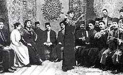 Despite the Russian conquest, throughout the entire 19th century, preoccupation with Iranian culture, literature, and language remained widespread among Shia and Sunni intellectuals in the Russian-held cities of Baku, Ganja and Tiflis (Tbilisi, now Georgia).[90] Within the same century, in post-Iranian Russian-held East Caucasia, an Azerbaijani national identity emerged at the end of the 19th century.[91] As a result of the Russian conquest, the Azerbaijanis are nowadays parted between two nations: Iran and Azerbaijan.[92]