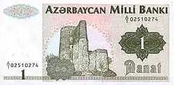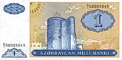 1 manat | 125×63 | pink | Maiden Tower in Baku | inscription «AZƏRBAYCAN MİLLİ BANKI» | 1992 |