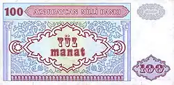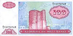 100 manats | pink, blue | inscription «AZƏRBAYCAN MİLLİ BANKI» and denomination «YÜZ manat» | |||