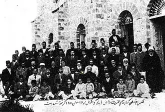 By 1848 the increased fervour of the Bábís and the clerical opposition had led to a number of confrontations between the Bábís and their government and clerical establishment.[33] After the death of Mohammad Shah Qajar, the shah of Iran, a series of armed struggles and uprisings broke out in the country, including at Tabarsi.[33] These confrontations all resulted in Bábí massacres; Bahá'í authors give an estimate of 20,000 Bábís killed from 1844 to present, with most of the deaths occurring during the first 20 years.[37] The first major killings of Bábís recorded in history took place in Qazvin. Since then, attacks against the Bábís by prominent clerics and their followers became more common and some Bábís started to carry arms.[37] In remote and isolated places the scattered Bábís were readily attacked and killed while in places where large numbers of them resided they acted in self-defense.[38] One of these attacks occurred in Babol of Mazandaran which led to the death of several Bábís and their opponents, as well as an armed conflict between Bábís and their enemies in fort Ṭabarsí. After that, two other big clashes between the Bábís and their opponents took place in the cities of Zanjan and Neyriz in the north and south of Iran, respectively, as well as a smaller conflict in Yazd. A total of several thousand Bábís were killed in these conflicts.[37] In the three main conflicts in Ṭabarsí, Zanjan and Neyriz, Bábís were accused by their enemies of revolting against the government.[39] However, it seems unlikely that these actions were purely revolutionary.[39] In all three cases, the battles that took place were of a defensive nature, and not considered an offensive jihad, as the Báb did not allow it and in the case of two urban conflicts (Neyriz and Zanjan), they were related to pre-existing social and political tensions within the towns.[39][40] There is also no evidence of a coordinated plan of action.[39] In mid-1850 a new prime-minister, Amir Kabir, was convinced that the Bábí movement was a threat and ordered the execution of the Báb which was followed by the killings of many Bábís.[33]