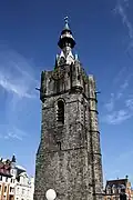 Béthune is a town rich in architectural heritage and history. It has, among other features, a large paved square with shops, cafés, and a 47-metre-tall (154 ft) (133 steps) belfry standing in the center from the top of which the Belgian border can be seen. The chime of the belfry is composed of thirty-six bells. A belfry has stood on the site since 1346.[4] The current belfry plays melodies every 15 minutes, including the ch'ti (regional patois) children's lullaby "min p'tit quinquin" (my little darling).[5] In 2005, the belfry was inscribed on the UNESCO World Heritage List as part of the Belfries of Belgium and France site, because of its architecture and testimony to the rise of municipal power in Europe.[6]