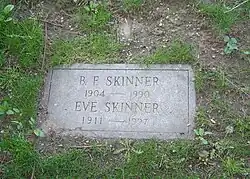 In 1936, Skinner married Yvonne "Eve" Blue. The couple had two daughters, Julie (later Vargas) and Deborah (later Buzan; married Barry Buzan).[21][22] Yvonne died in 1997,[23] and is buried in Mount Auburn Cemetery, Cambridge, Massachusetts.[17]