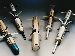 Hughes developed a TOW missile with a wireless data link in 1989, referred to as TOW-2N, but this weapon was not adopted for use by the U.S. military. Raytheon continued to develop improvements to the TOW line, but its FOTT (Follow-On To TOW) program was canceled in 1998, and its TOW-FF (TOW-Fire and Forget) program was cut short in 2002 because of funding limitations.[22] In 2001 and 2002, Raytheon and the U.S. Army worked together on an extended range TOW-2B variant, initially referred to as TOW-2B (ER), but now called TOW-2B Aero, which has a special nose cap that increases range to 4.5 km. TOW-2B has top attack capability.[23] Although this missile has been in production since 2004, no U.S. Army designation has yet been assigned. Wireless versions of the TOW-2A, TOW-2B, and TOW-2B Aero have been developed that use a "stealthy" one-way radio link, identified with the suffix "RF".[21] These missiles require no special alterations to the launcher since the RF transmitter is encased along with the missile and uses the standard umbilical data connector.