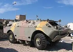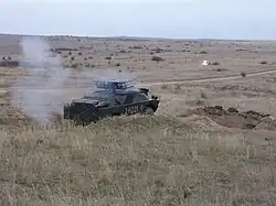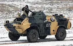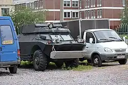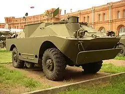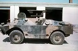 The BRDM-2 (Boyevaya Razvedyvatelnaya Dozornaya Mashina, Боевая Разведывательная Дозорная Машина, literally "Combat Reconnaissance/Patrol Vehicle")[5] is an amphibious armoured scout car designed and developed in the Soviet Union. It was also known under the designations BTR-40PB, BTR-40P-2, and GAZ 41-08. This vehicle, like many other Soviet designs, has been exported extensively and is in use in at least 38 countries. It was intended to replace the older BRDM-1, and has improved amphibious capabilities and better armament compared to its predecessor.