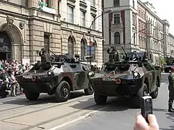 BRDM-2, BRDM-2M-96 and BRDM-2M-96i armoured cars were used by Polish units of SFOR. Polish KFOR units also use BRDM-2M-96 armoured scout cars and BRDM-2RS NBC reconnaissance vehicles. Polish Forces in Iraq operated 12 BRDM-2M-96ik "Szakal" and 14 BRDM-2M-97 "Żbik-B".[1] 10 BRDM-2M-96ik were used by Polish forces of ISAF.[13] However, these are now back in Poland, as are the 12 vehicles used in Iraq.