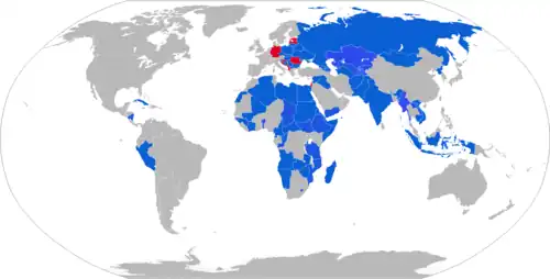 Like all Soviet equipment, the BRDM-2 was also sold to many Arab and African countries. It is used by 38 armies. The BRDM-2 has enjoyed popularity on the export market because it was cheap, easy to operate and reliable. These factors made the BRDM-2 a more popular export reconnaissance vehicle than the BRM-1K, which was much more expensive and complicated to operate.[1] Two BRDM-2s were sold to Grenada and were lost in the Invasion of Grenada. One was destroyed in an engagement with American M60 Pattons and the second was captured.