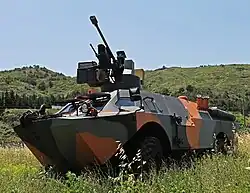 Caiman – Upgraded BRDM-2 with no turret. Entered service in 2017.[24][25] It has been exported to Ivory Coast and Angola.[26] The vehicle is powered by a D-245.30E2 diesel engine, which produces a maximum road speed of 110 km/h, a maximum swimming speed of 8 km/h, and a road cruise range of up to 1,000 km. The ARV can carry a Kalashnikov 7.62 mm medium machinegun, NSVT Utyos 12.7 mm heavy machinegun (HMG), AGS-17 30 mm automatic grenade launcher, Adunok remote-controlled weapon station with an Utyos HMG, or a communications suite. Belarusian sources say the vehicle has been made from scratch.[27] Its combat weight is 8.5 tons.[28]