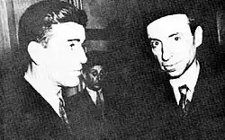 The party was founded on 7 April 1947 [3]as the Arab Ba'ath Party by Michel Aflaq (an Antiochian Orthodox Christian), Salah al-Din al-Bitar (a Sunni Muslim), and the followers of Zaki al-Arsuzi (an Alawite who later became an atheist) in Damascus, Syria, leading to the establishment of the Syrian Regional Branch.[4] Other regional branches were established throughout the Arab world in the later 1940s and early 1950s, in, among others, Iraq,[5] Yemen and Jordan.[6] Throughout its existence, the National Command (the body responsible for all-Arab affairs) gave most attention to Syrian affairs.[4] The 2nd National Congress was convened in June 1954 and elected a seven-man National Command; Aflaq, Bitar, and Akram al-Hourani were elected and represented the Syrian Regional Branch,[7] while Abdullah Rimawi and Abdallah Na'was were elected to represent the Jordanian Branch.[8] The 1954 congress is notable for sanctioning the merger of the Arab Socialist Movement and the Ba'ath Party, which took place supposedly in January 1953, with the newly merged party resuming publications under the name the Arab Socialist Ba'ath Party after 8 April 1954.[9][10]