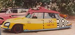 The producers created a futuristic flying car to depict a typical taxi cab in the future world of 2015. This taxi was based on the Citroën DS.[33]