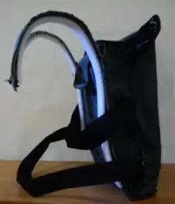 Some backpacks are designed for specific purposes, including carrying equipment, specialized gear, or even small pets. Common examples include backpacks for small valuable items such as laptops and cameras;[10] backpacks designed to hold laptop computers in particular generally have a padded compartment to hold the computer and medium-sized pockets and flaps to accommodate accessories such as charger cables and mice. These are especially common in college and university settings. In order to supply these devices with electricity, a few high-end backpacks are equipped with solar panels.[11]