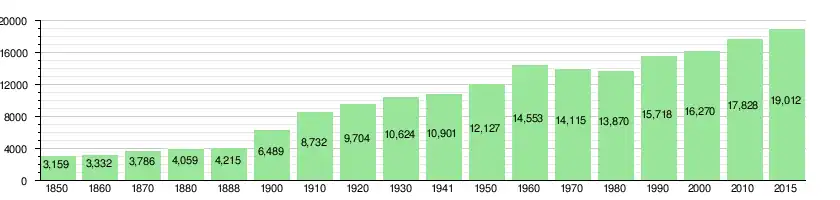 - ^ Swiss Federal Statistical Office STAT-TAB Bevölkerungsentwicklung nach institutionellen Gliederungen, 1850-2000 (in German) accessed 27 April 2016