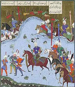 16th-century Shahnameh illustration of Bahram V and his forces on their expedition against the Kidarites