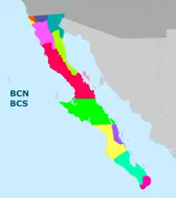 Municipalities in Baja California Peninsula since 2022; includes both Baja California and Baja California Sur Municipalities.