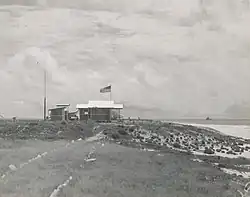 During the American Equatorial Islands Colonization Project, American settlers set up temporary camps on Baker Island. As part of the colonization effort, American settlers arrived on Baker Island aboard the USCGC Itasca, which also brought colonists to neighboring Howland Island, on April 3, 1935, establishing a settlement named Meyerton. The settlers built a lighthouse and dwellings and attempted to cultivate plants. However, most of these efforts were unsuccessful due to the island's harsh conditions, including its dry climate and the impact of seabirds.[21] Meyerton's population was recorded as three American civilians in the 1940 U.S. Census.[22] The settlement was eventually evacuated in 1942 following Japanese attacks during World War II, and the U.S. military forces subsequently occupied the island.[23] The town was named for Captain H. A. Meyer, United States Army, who assisted in establishing living quarters and rainwater cisterns for the colonists. It was located on the west side of the island, at an elevation of 13 feet (4.0 m) above sea level.[24]