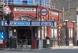 An extension at the southern end of the line to Camberwell and Denmark Hill was proposed and approved in 1931 as part of the London Electric Metropolitan District and Central London Railway Companies (Works) Act, 1931.[6][7] In April 1937, the estimated cost of the proposed extension was £5,000,000 (approximately £360 million today)[8] and the London Passenger Transport Board announced that, due to rising materials prices, the extension had been postponed until the Board's finances improved.[9] Apart from the extension of the sidings south of Elephant & Castle, no work on the extension took place before the Second World War, but the powers were renewed by the government in 1947 under the Special Enactments (Extension of Time) Act, 1940.[10] A projected extension as far as Camberwell was shown on a 1949 edition of the Underground map but the scheme was suspended in 1950 as costs had increased to £6.25 million.[11][12] The train describers at Warwick Avenue station showed Camberwell as a destination until the 1990s.[13] Further extensions of the line were considered, south to Peckham Rye in the 1970s, and east to London Docklands and Canary Wharf in the 1980s. Neither proposal was proceeded with.[14][15]