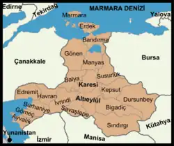 - ^ "Jurisdiction of Balıkesir Metropolitan Municipality". balikesir.bel.tr. Archived from the original on 2015-04-09. Retrieved 2020-06-15.