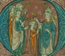 ![]() 13th-century depiction of Baldwin at his coronation | |