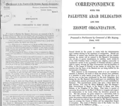 1. His Majesty's Government accepts the principle that Palestine should be reconstituted as the national home of the Jewish people. 2. His Majesty's Government will use its best endeavours to secure the achievement of this object and will discuss the necessary methods and means with the Zionist Organisation.[148] |