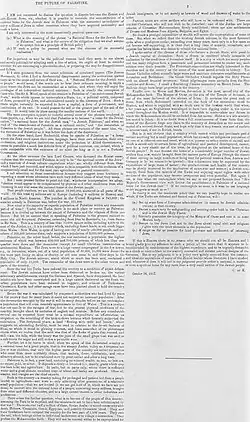 | Purpose | Confirming support from the British government for the establishment in Palestine of a "national home" for the Jewish people, with two conditions |